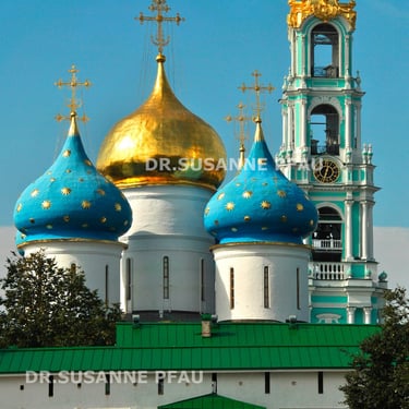 Nordöstlich von Moskau am Ufer des malerischen Flusses Kontschura liegt die Stadt Sergijew Possad, die 1345 vom Mönch Sergius von Radonesh gegründet wurde. Die Stadt ist für ihr beeindruckendes Klosterensemble, das seit 1993 von der UNESCO in die Liste des Weltkulturerbes aufgenommen wurde, bekannt. Das Männerkloster der Heiligen Dreifaltigkeit („Troiza-Sergijewa Lawra“), mit ihren Wehrtürmen und einer starken Schutzmauer, ist ein lebendiges Heiligtum der russisch-orthodoxen Christen. Auf dem Gelände des Klosters befindet sich eine theologische Akademie und die Residenz des Patriarchen von Russland. Außerdem im Klosterhof ist der Mariä-Himmelfahrts-Brunnen vorhanden, dessen Wasser unter den Gläubigen als „heiliges Wasser“ gilt. Sergijew Possad beherbergt zahlreiche Kirchen, Kapellen und Klostergebäude, die mit wundervollen Fresken und Ikonen von dem bekannten Ikonenmaler Andrey Rubljow verziert sind. Seit 1899 ist Sergijew Possad die Heimatstadt der weltberühmten russischen „Matrjoschkas“. Es sind ineinander geschachtelten Puppen, die junge Frauen mit Kopftuch und Schürze darstellen.
